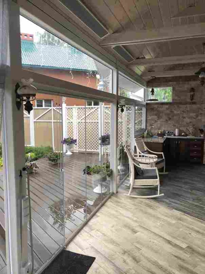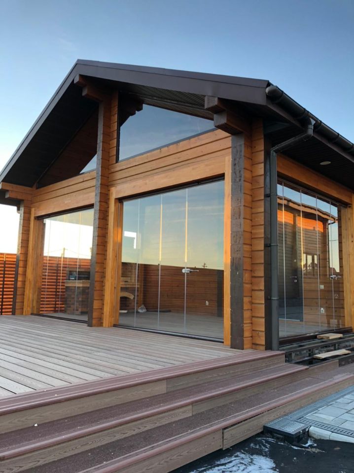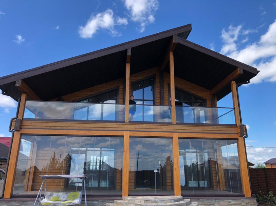 Для безрамного остекления используется, закалённое стекло толщиной 10 мм.