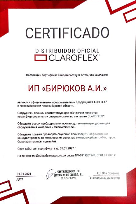 Единственный в Новосибирске официальный дистрибьютор с правом продажи и установки систем безрамного остекления Claroflex®.