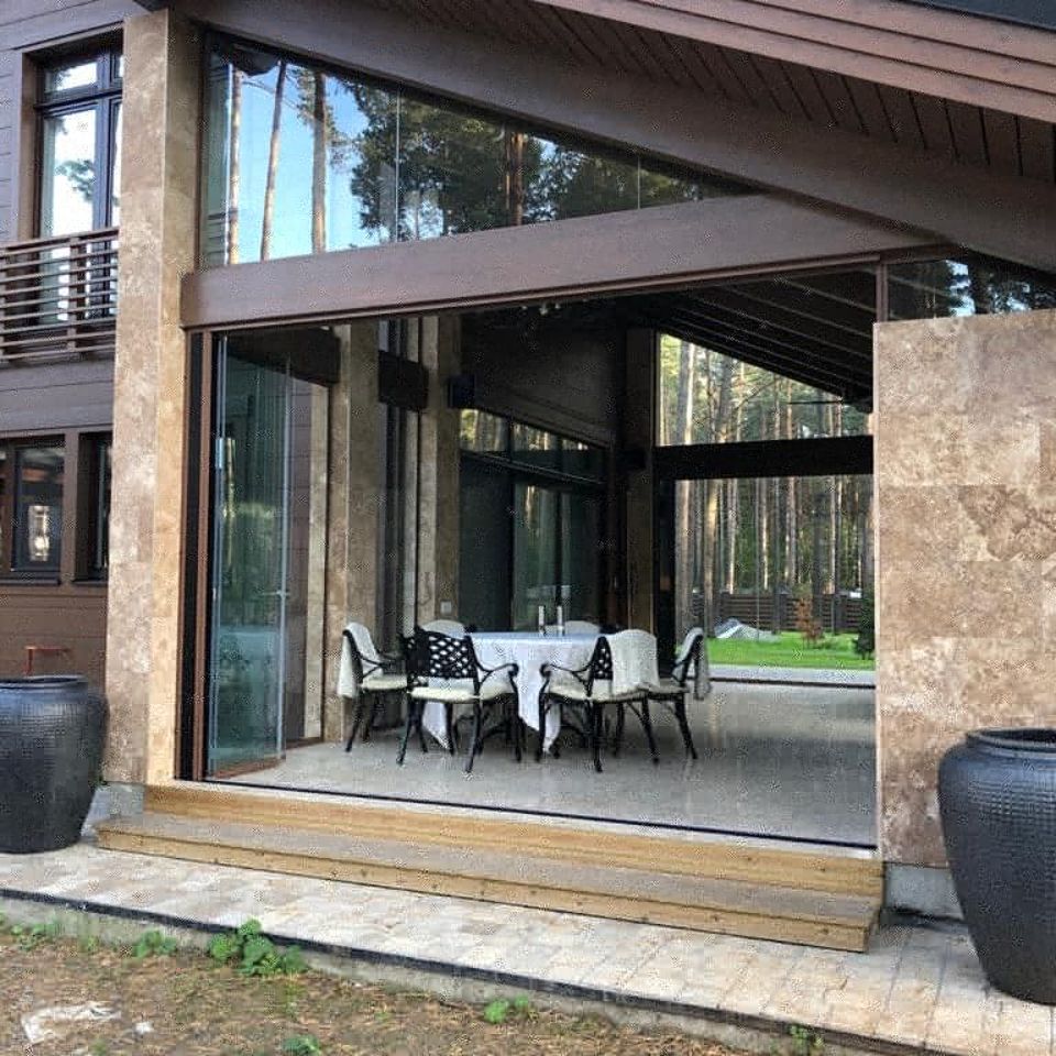 В системе используется монолитное(однослойное), закаленное стекло, а не энергосберегающие стеклопакеты.