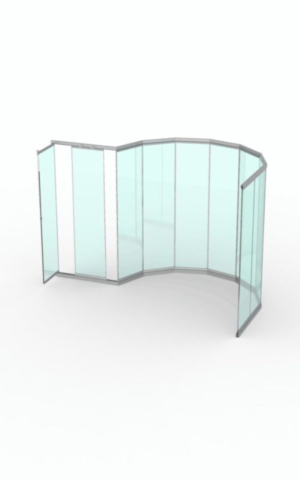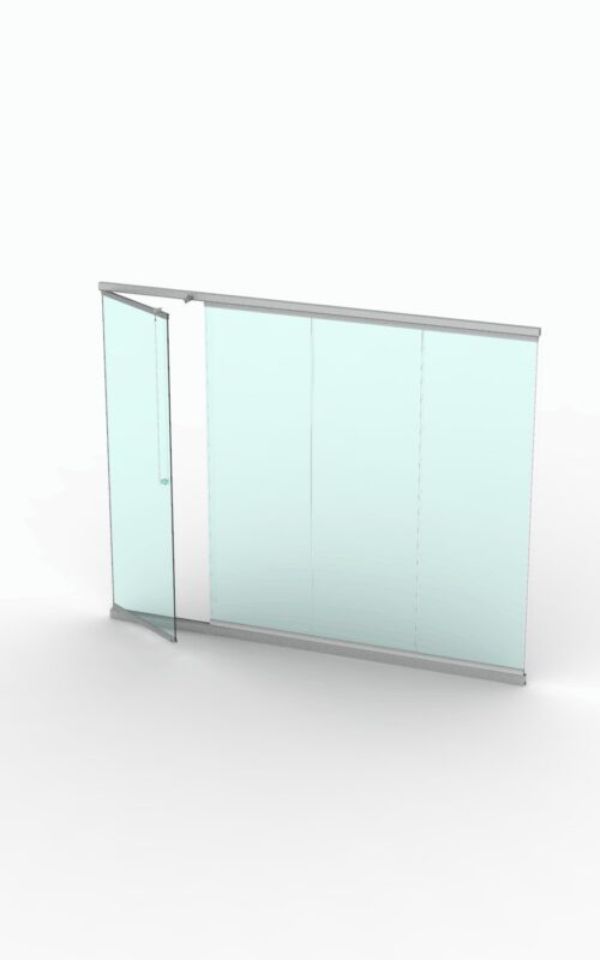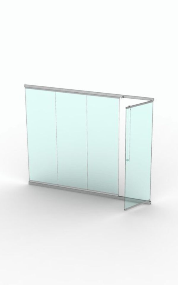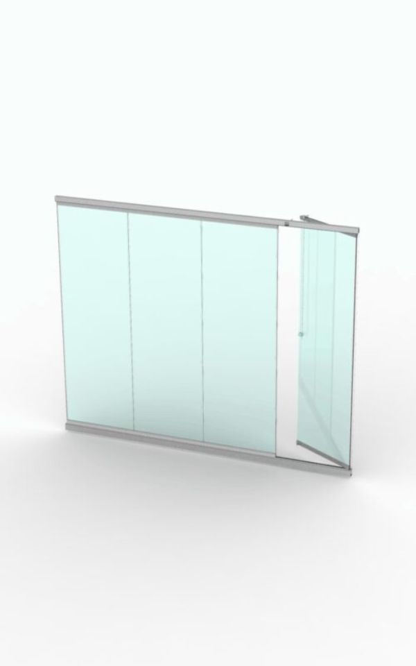 При необходимости полностью открыть проем, сдвигается вместе с остальными створками в нужном направлении.