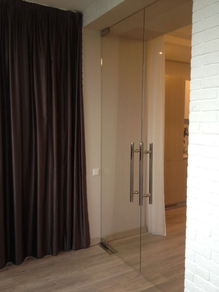 В данном проекте маятниковые двери установлены во всю высоту проёма